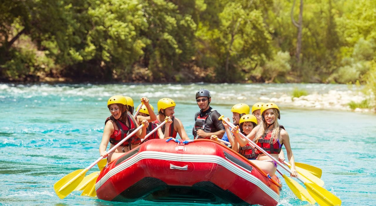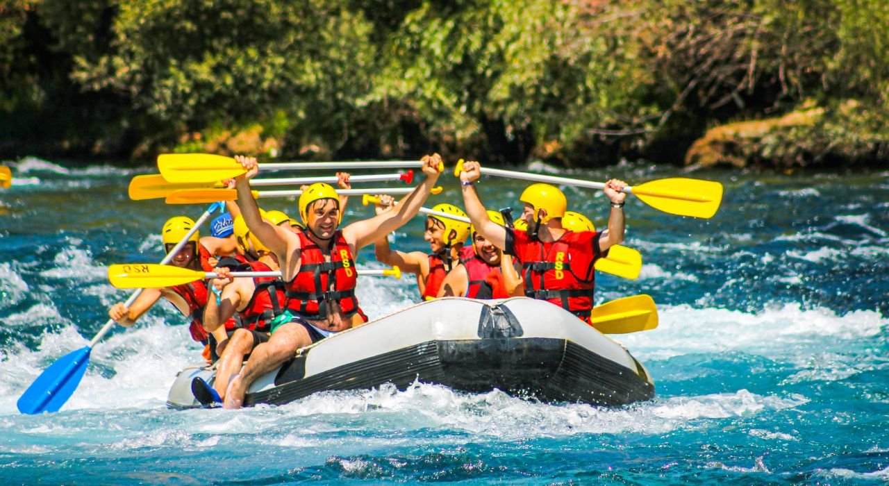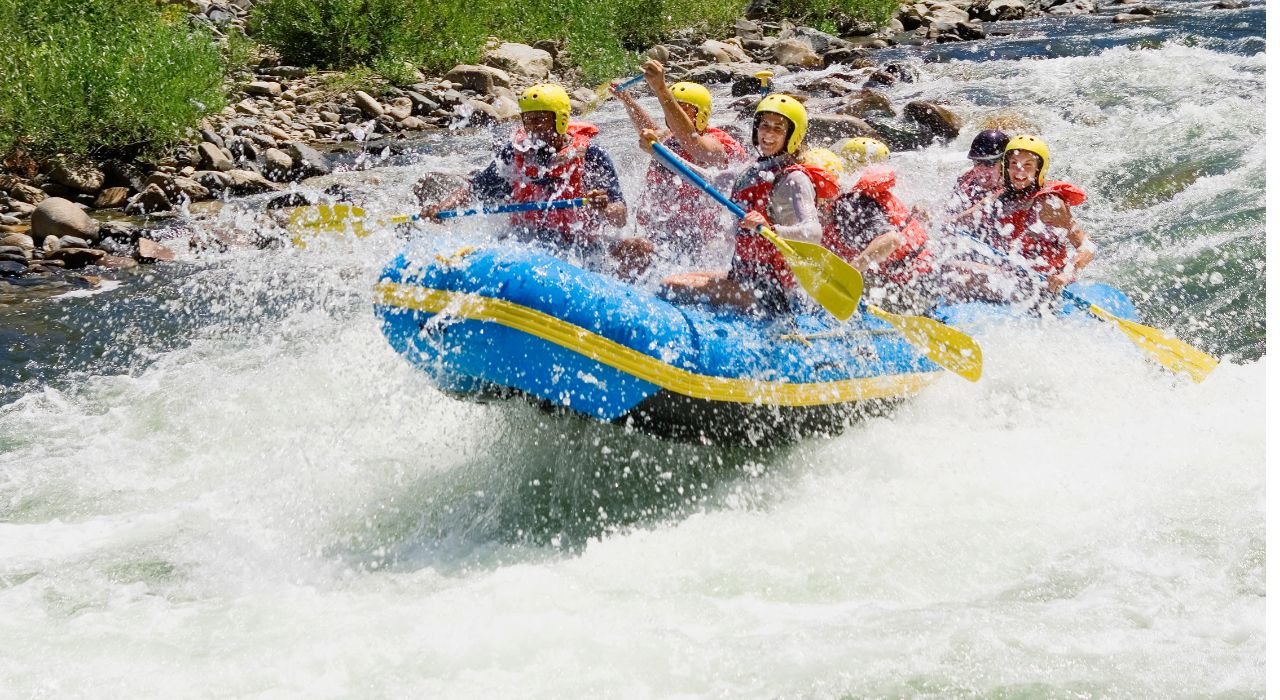 Feel the thrill of navigating the rapids of a rushing river in an inflatable raft on a white water rafting adventure. Work together with your group to paddle the raft and navigate through the rapids.
